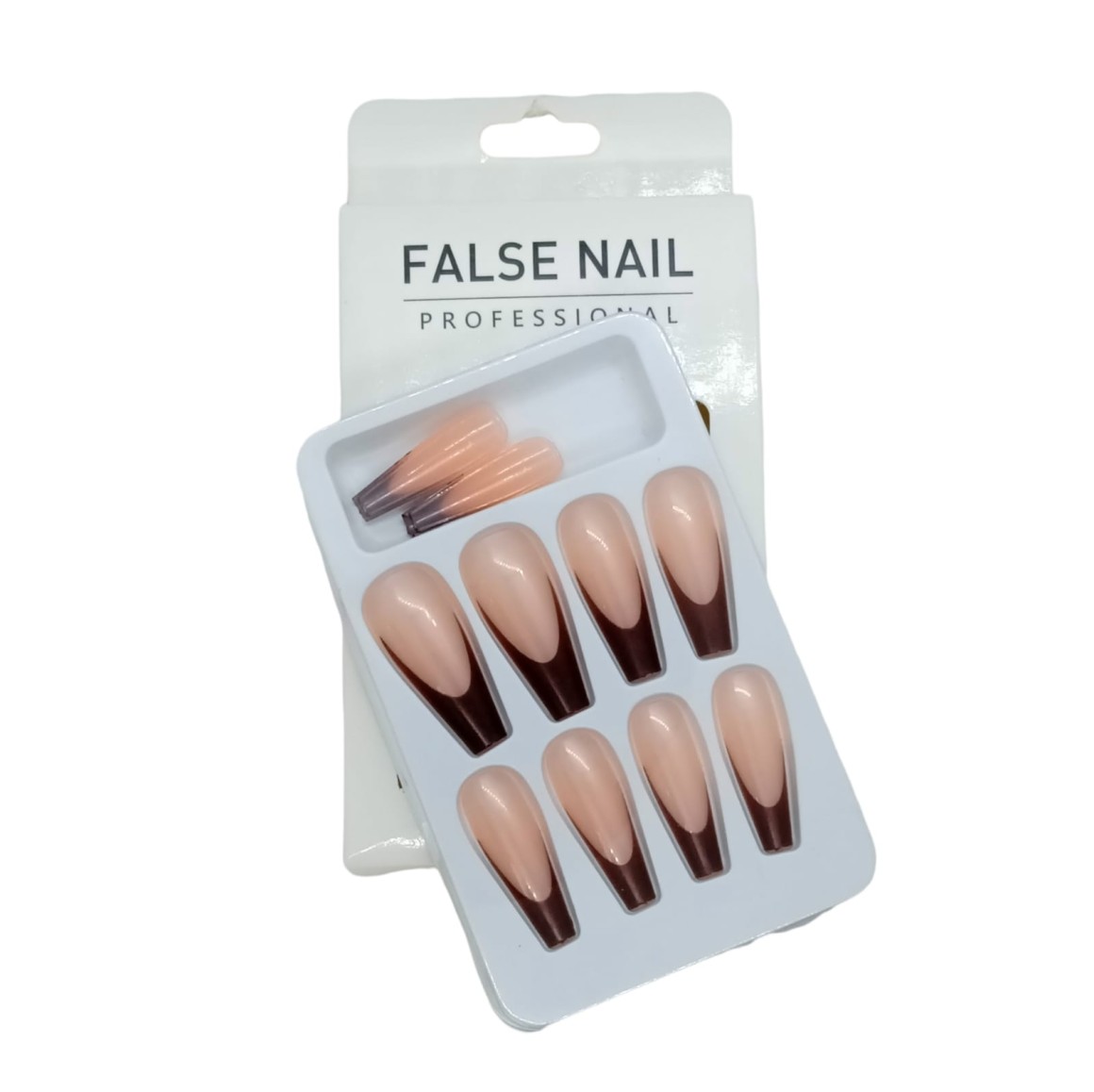 FALSE NAIL UNHA POSTIÇA C/12 ROSA COM MARROM