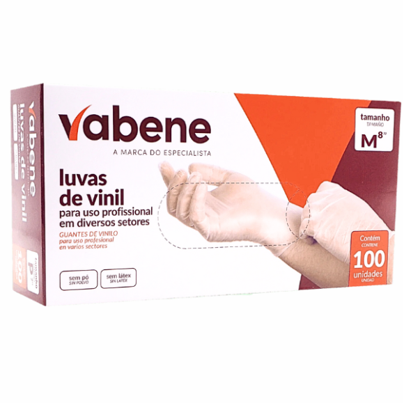 VABENE LUVAS DE VINIL TAMANHO M 8 COM 100 UNIDADES