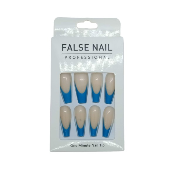 FALSE NAIL UNHA POSTIÇA C/12 NUDE COM AZUL