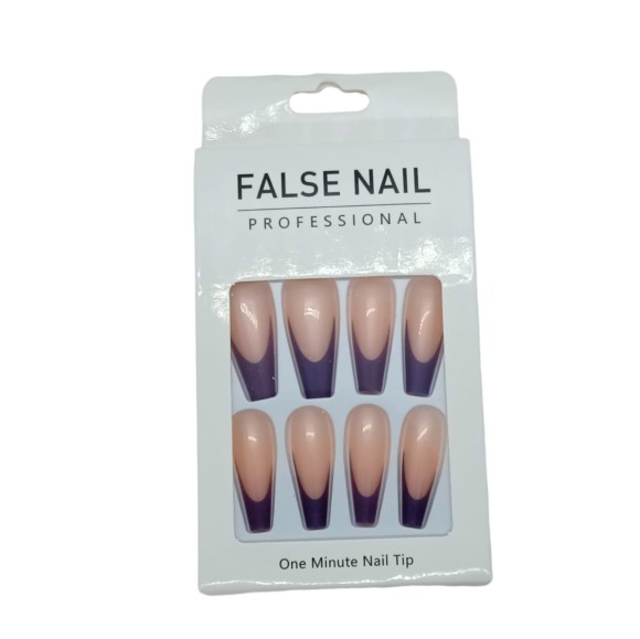 FALSE NAIL UNHA POSTIÇA C/12 ROSA COM ROXO